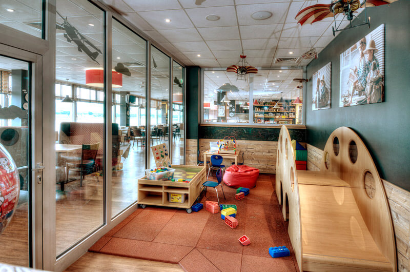 The play area represents a real added value, especially for parents who travel with children or visit the airport to pick up guests, for example. Two pieces of playground equipment in the form of a jumbo and a helicopter offer fun and entertainment for the little ones.