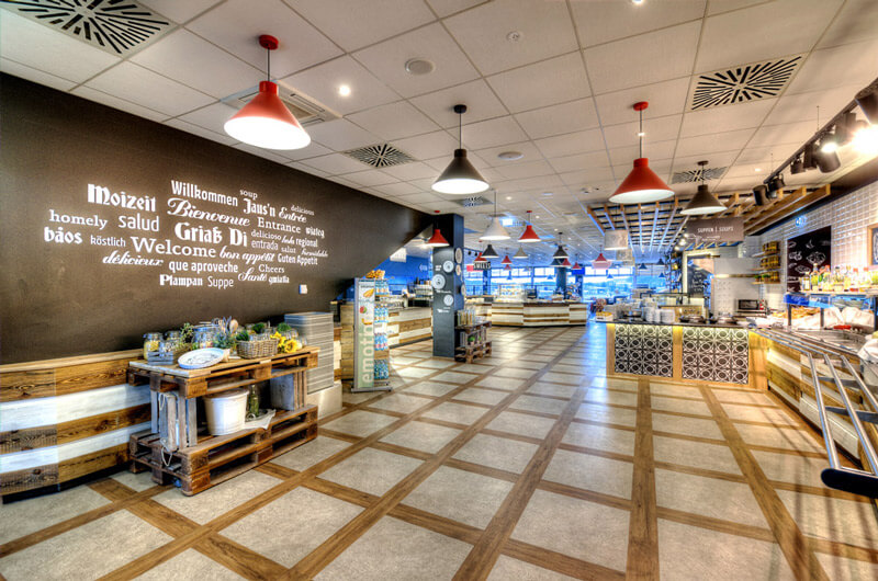 The self-service market restaurant convince with its diverse, fresh and delicious buffet selection. You can strengthen before the trip, relaxe while waiting or simply meet people an watch planes and enjoy the international flair.