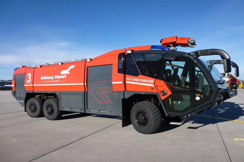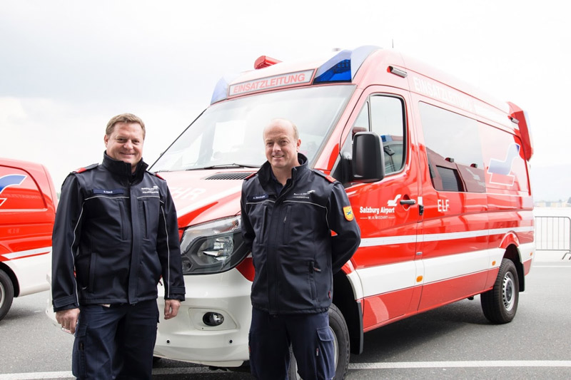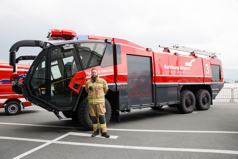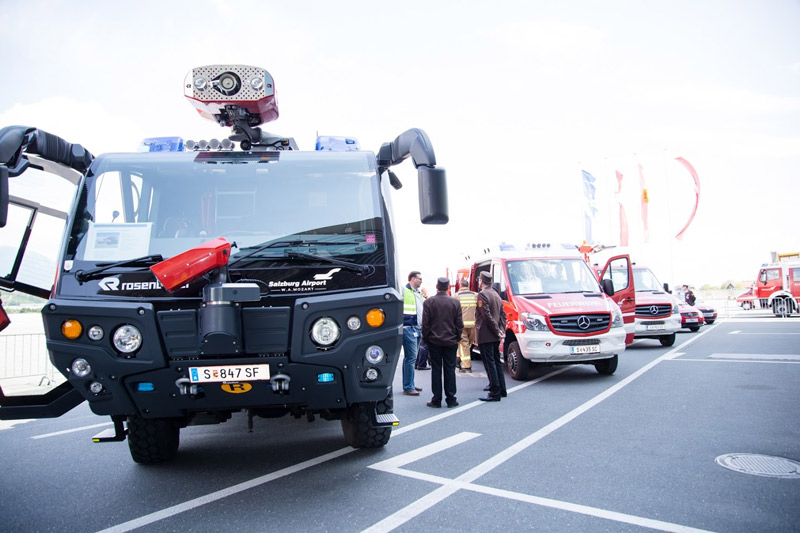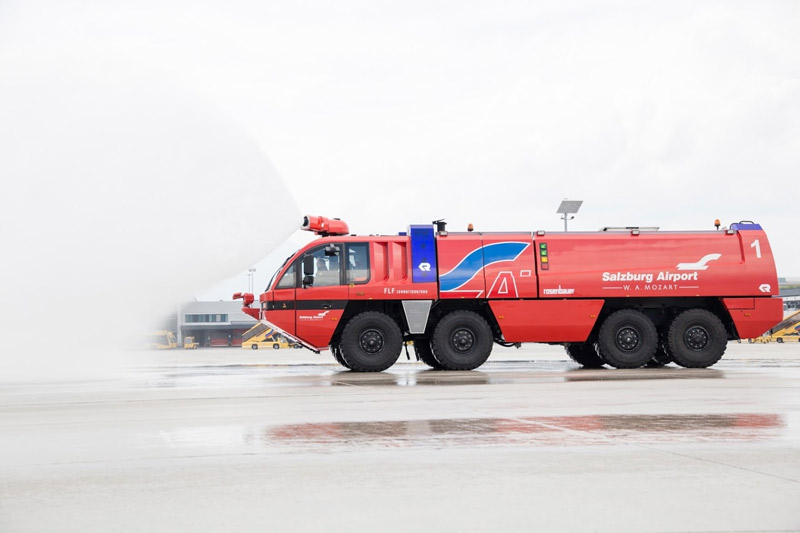 The Salzburg airport fire brigade is equipped with 8 fire trucks with a total capacity of 33,500 litres of water and 4,500 litres/kilos of foam fire retardant. This meets the Category 9 standards of the international ICAO firefighting requirements.