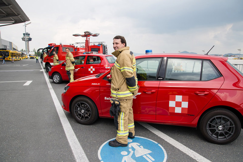Salzburg Airport's Category 9 fire-fighting designation corresponds to the second highest level in ICAO guidelines. As a Category 9 facility, 24,300 litres of water and 1,458 litres of foaming agentas as well as 450 kg of powder are available from at least three fire engines at Salzburg Airport. The directive also stipulates that the three fire engines together must generate an output of at least 9,000 litres of foam-water mixture in one minute.