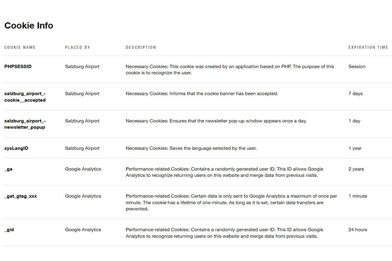 Salzburger Flughafen GmbH is the operator of this website and therefore is the Controller concerned for most data processing issues regarding this website (e.g. log files, social media, newsletter registration).