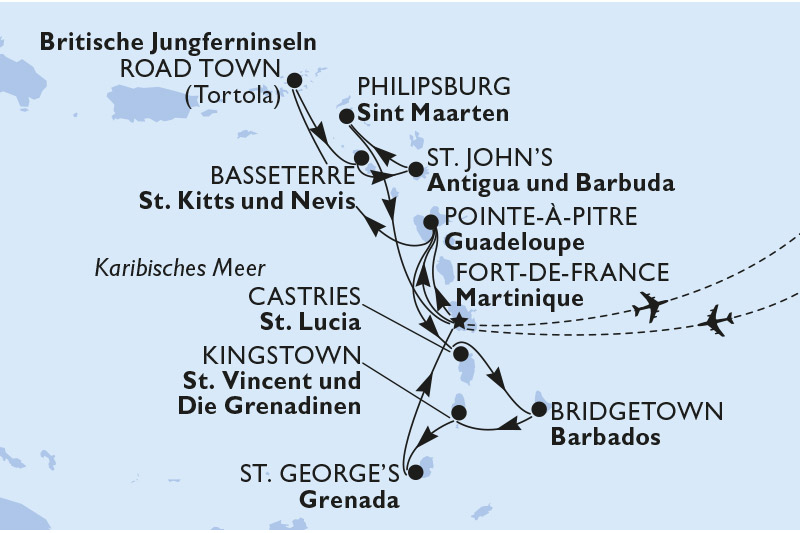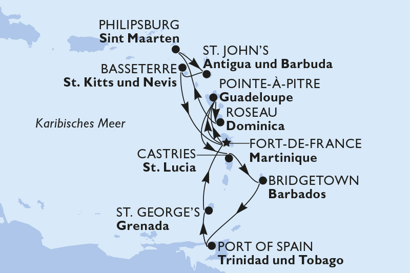 Routenkarte: Kreuzfahrt mit der MSC Cruises Mittelmeer Kreuzfahrt