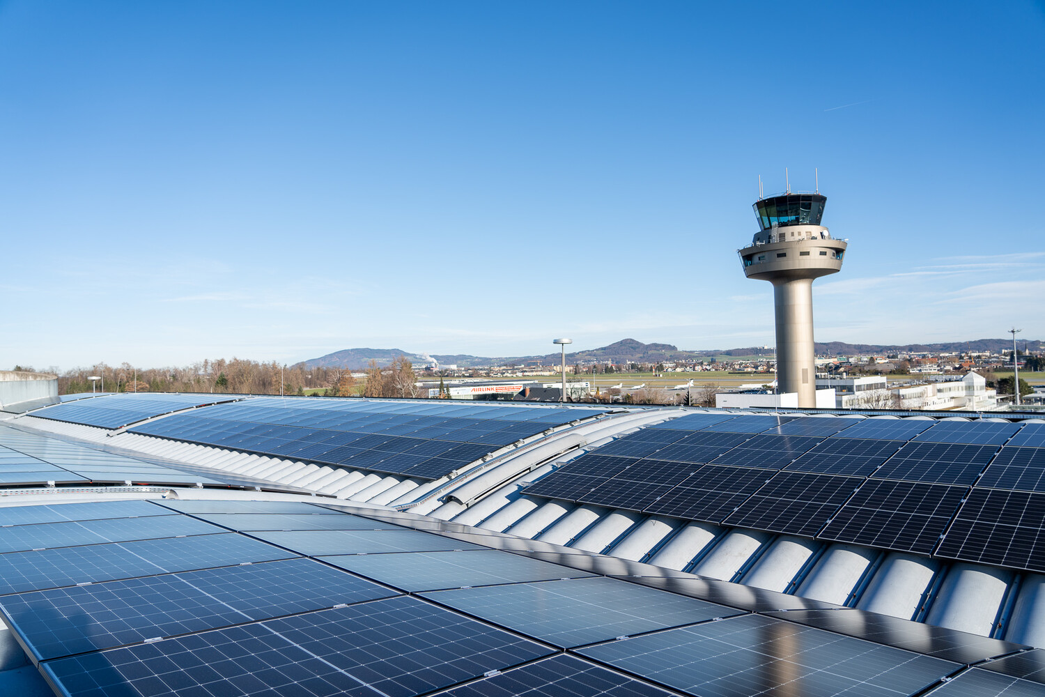 Airport expands PV system portfolio / almost 2,700 modules installed / roof areas ideal for green energy generation / final expansion of parking garage roof areas to yield 1.13 megawatt peak of energy