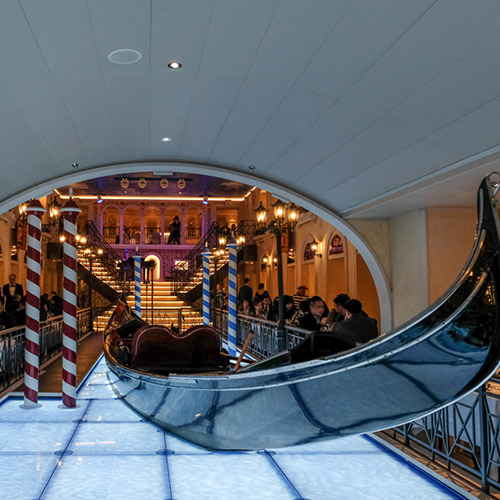 Restaurants und Bars: Das Schiff bietet zahlreiche gastronomische Einrichtungen, darunter das Hauptrestaurant „Michelangelo“ und das Buffet-Restaurant „Café il Gattopardo“. Außerdem gibt es 7 Bars, darunter die „Bar della Fortuna“, wo Gäste Cocktails genießen können.
