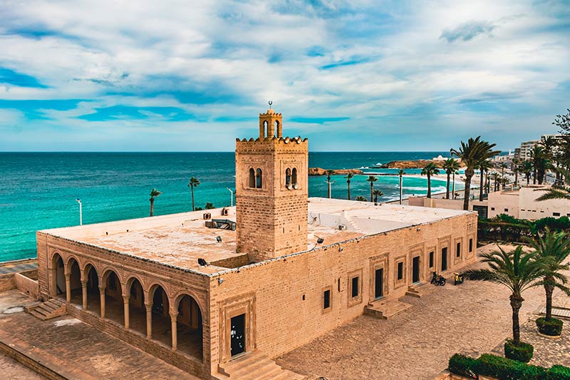 M wie Mediterrane Schönheit: Monastir liegt direkt am türkisfarbenen Mittelmeer. Die Strände sind weit, das Wasser ruhig und klar – perfekt für alle, die Entspannung suchen.