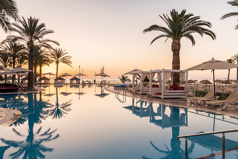 Verschiedene Pools bieten sowohl Action als auch Erholung, während ein abwechslungsreiches Sport- und Entertainment-Programm für Begeisterung sorgt. Ob aktive Stunden beim Wassersport und Fitnesskursen oder Momente der Ruhe und Entspannung – die Möglichkeiten sind vielfältig. Kilometerlange, feinsandige Strände laden zu ausgedehnten Spaziergängen und purem Badespaß ein. Vor allem Familien werden den Family Pool mit Wasserrutschen sowie das professionelle Kinder- und Teensprogramm lieben. Die entspannte, internationale Clubatmosphäre lädt zu einem unvergesslichen Urlaub ein. Die Hotelanlage liegt etwa 90 Autominuten von Monastir entfernt.