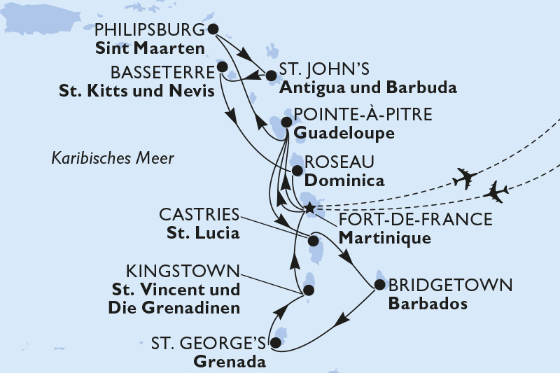Routenkarte: Kreuzfahrt mit der MSC Cruises Mittelmeer Kreuzfahrt
