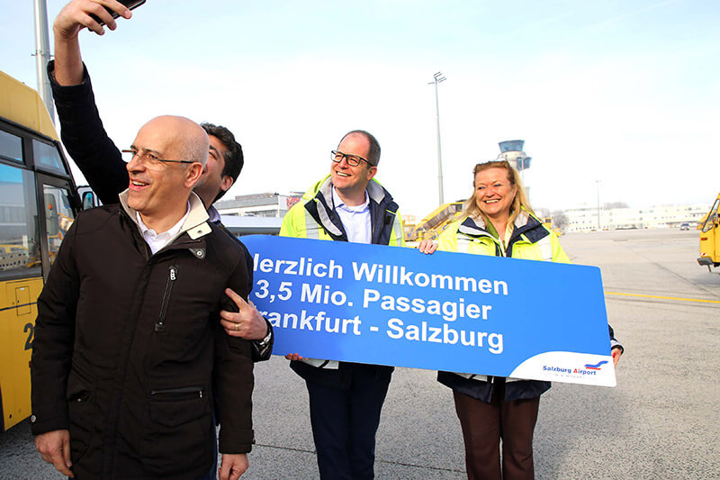 „Ich fand es wirklich bezaubernd, dass einige Passagiere die Gelegenheit nutzten und gemeinsam mit uns und unserem Willkommensschild ein Selfie machten. Trotz der Kälte waren alle bestens gelaunt und der Flieger war sehr gut gefüllt. Gerade die hohen Auslastungen dieser Flüge von und nach Frankfurt und auch der Strecke nach Wien zeigen, wie wichtig diese Verbindungen für unseren Wirtschaftsraum sind. Ein voller Flieger ist aber auch ein Gewinn für die Airline,“ so Bettina Ganghofer.