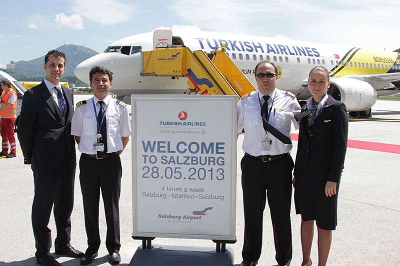 Dostça karşılama Salzburg – Willkommen in Salzburg hieß es am 28. Mai 2013 für den ersten Flieger, der Gäste von der Metropole am Bosporus nach Salzburg brachte. Über die neue Verkehrsdrehscheibe in Istanbul eröffneten sich Turkish Airlines-Fluggästen nicht nur viele innertürkische Verbindungen, sondern auch zahlreiche internationale Destinationen in den Mittleren Osten, Indien, Pakistan, den Fernen Osten, Afrika, sowie Nord- und Südamerika.