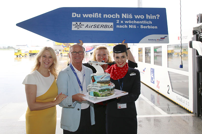 Zweimal wöchentlich von Salzburg nach Niš / der National Carrier der Republik Serbien/ die Veranstaltung nach der Erstlandung wurde zum Netzwerken genutzt