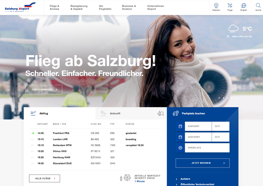 Rund 7 Jahre nach dem letzten Website-Relaunch hat der Flughafen Salzburg sein „Schaufenster nach außen“ runderneut und um viele Elemente bereichert.