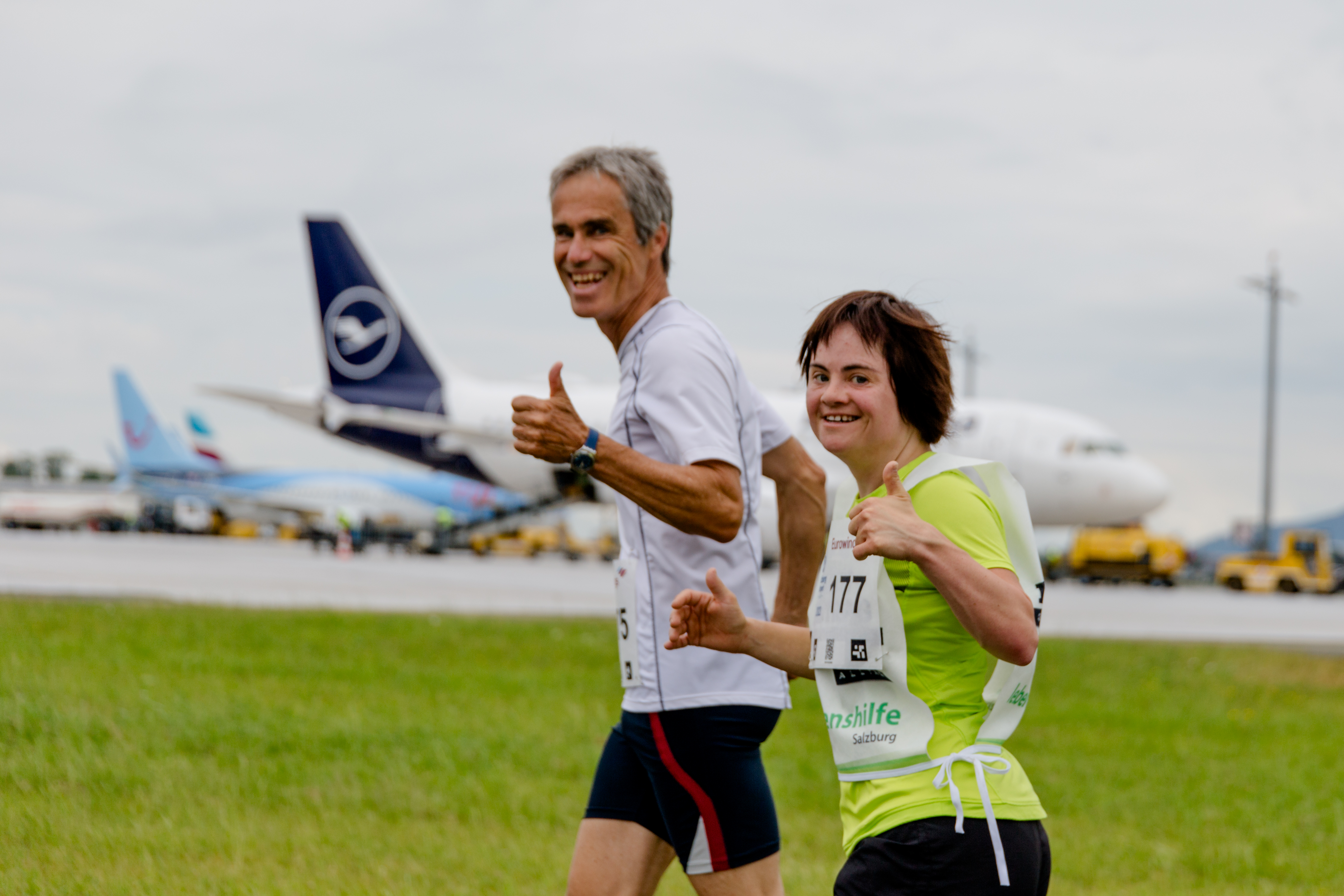 Knapp 400 motivierte Sportler schnürten heute bei angenehmen Lauftemperaturen für den guten Zweck die Laufschuhe und nahmen in einer außergewöhnlichen Kulisse, direkt am Vorfeld des Salzburger Flughafens, am 6. AIRportlauf teil. Motivation war – neben der sportlichen Herausforderung – möglichst viele Kilometer für das Projekt „Betreutes Wohnen in Wals“ der Lebenshilfe Salzburg zu erlaufen.