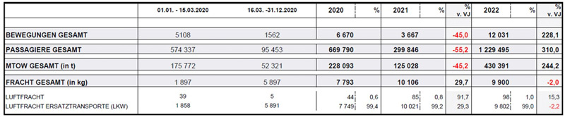 Nach zähen "Sparjahren" wird voraussichtlich erst nach 2024 der Anschluss an die Zahlen von 2018 gelingen, die Corona Jahre waren „Extrem-Sparjahre“. Als turbulent, einschränkend, besorgniserregend, teilweise katastrophal und hoffnungsvoll kann man die Zeitperiode zwischen den Jahren 2020 und 2022 bezeichnen. Es waren Jahre, die Europa und der ganzen Welt viel abverlangt haben, Jahre des Rückschritts, Jahre des Sparens, der Isolation und Jahre des Bangens und Hoffens. „Nach unserer Pistensanierung im Jahr 2019 hätte sich niemand vorstellen können, was auf uns zukommt. Wir konnten weder langfristig planen, noch wussten wir, was der nächste Tag an neuen Überraschungen für uns bereithielt, es war nicht einfach zusehen zu müssen, wie Europa Schritt für Schritt in den Stand By Modus versetzt wurde,“ resümierten Flughafengeschäftsführerin Bettina Ganghofer und Aufsichtsratsvorsitzender Dr. Christian Stöckl die zwei Corona Jahre 2020 und 2021.