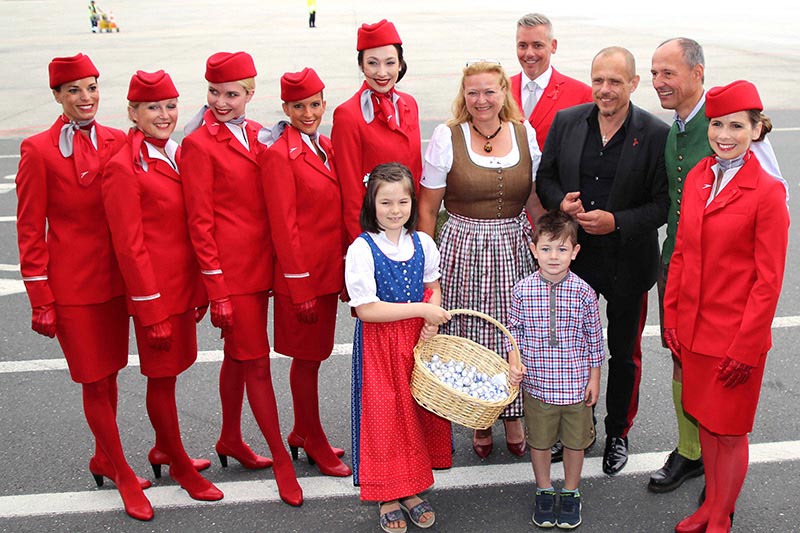 AUA Sondermaschine landet aus New York kommend in Salzburg / Stargäste starteten „Sound of Music Life Ball Tour” am Salzburg Airport / 25. Life Ball Auftakt im Land von Sound of Music