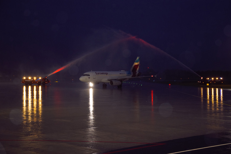 Eurowings landet als erste Airline auf neuem Pistenbelag / Generalsanierte Piste 15/33 wieder in Betrieb / Bau-Mannschaften waren trotz widriger Wetterverhältnisse voll im Zeitplan / Wetter war größte Herausforderung / Bauarbeiten auch im und um das Terminal