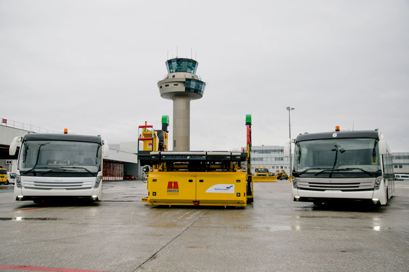 Nachdem die Vorfeldbusse in die Jahre gekommen sind und erneuert werden sollten, entschied sich die Abteilung Bodenverkehrsdienste die gesamte Flotte zu modernisieren. Aufgrund der aktuellen Abgasnormen und des Fahrprofils am Vorfeld, ist es nicht möglich einen Diesel-Bus einzusetzen. Daher macht es Sinn, elektrisch angetriebene Vorfeldbusse anzuschaffen.