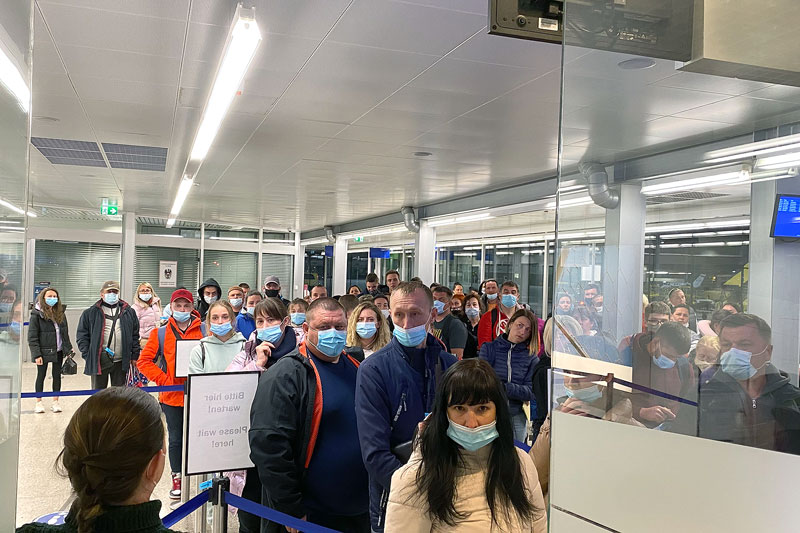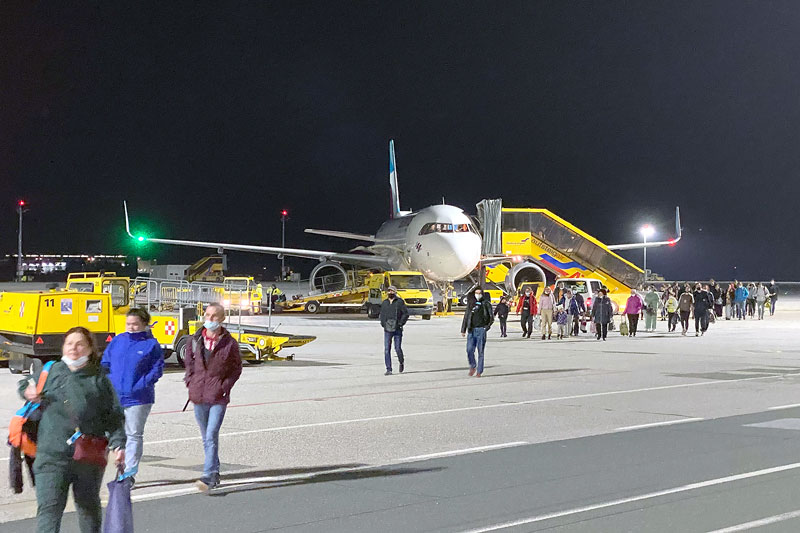 In einer gemeinsamen Hilfsaktion der deutschen Lufthansa Tochter Eurowings und dem Reiseprofi ETI am Mittwochabend, 3. März 2022, konnten 81 in Hurghada gestrandete ukrainische Passagiere nach Salzburg gebracht werden.