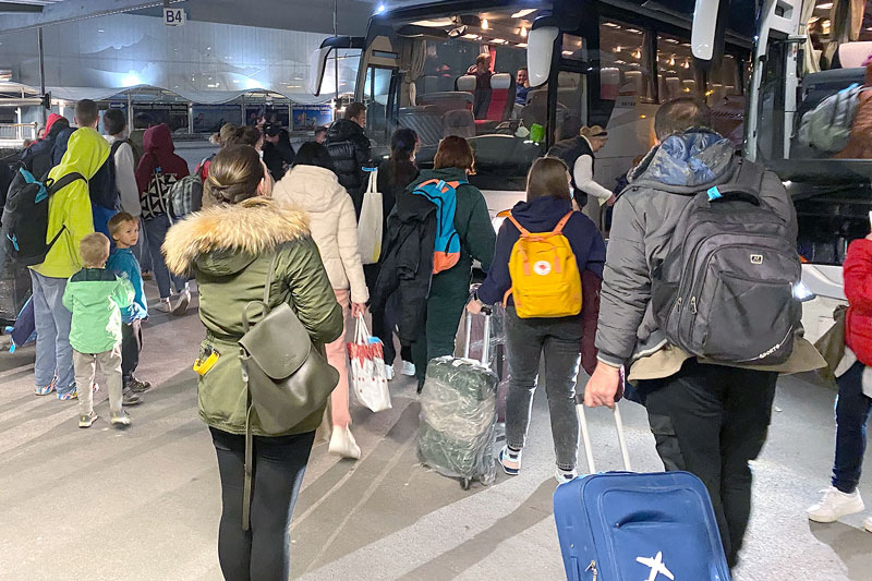 Von den 81 Passagieren mit ukrainischem Pass wurden nach der Einreise 65 Personen von zwei Bussen in ein Quartier nach Mondsee (OÖ) gebracht. 16 Personen suchten sich entweder selbst ein Quartier, wurden von Bekannten oder Verwandten abgeholt, oder traten die Weiterreise an. „Eine junge Dame ist mit Bus und Zug jetzt nach Frankreich unterwegs, einige sind abgeholt worden, doch der Großteil wurde in den Quartieren des Bundes untergebracht. Die Organisation vor Ort zwischen Flughafen, Polizei, Bundeheer und Rotem Kreuz funktioniere sehr gut, wichtig war, dass den Familien schnell geholfen wurde“, so Flughafenpressesprecher Alexander Klaus.