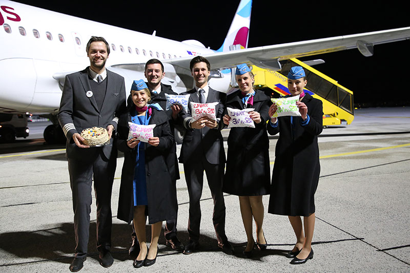Grund genug für die Marketingabteilung des Flughafens, Base Captain Bernhard Dallner und seine Crew vor dem Abflug nach Köln mit einer Torte zu überraschen. Auch die abfliegenden Gäste wurden anlässlich des Jubiläums mit einer Salzburger Spezialität versorgt und erhielten beim Boarding der Maschine Mozartkugeln.
