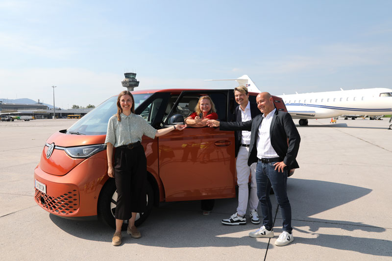 Am Vorfeld des Salzburg Airport W. A. Mozart erfolgte heute die offizielle Übergabe eines vollelektrischen ID. Buzz durch Porsche Austria Geschäftsführer Wilfried Weitgasser an Bettina Ganghofer, Geschäftsführerin des Flughafen Salzburg. Die nächsten 12 Monate wird der multifunktionale Allrounder u.a. als VIP-Shuttle sowie am Flughafenvorfeld als auch außerhalb nachhaltig und CO2-neutral seine Qualitäten unter Beweis stellen und so auch wichtige Erkenntnisse über den Einsatz von Elektro-Fahrzeugen im Flughafeneinsatz liefern.