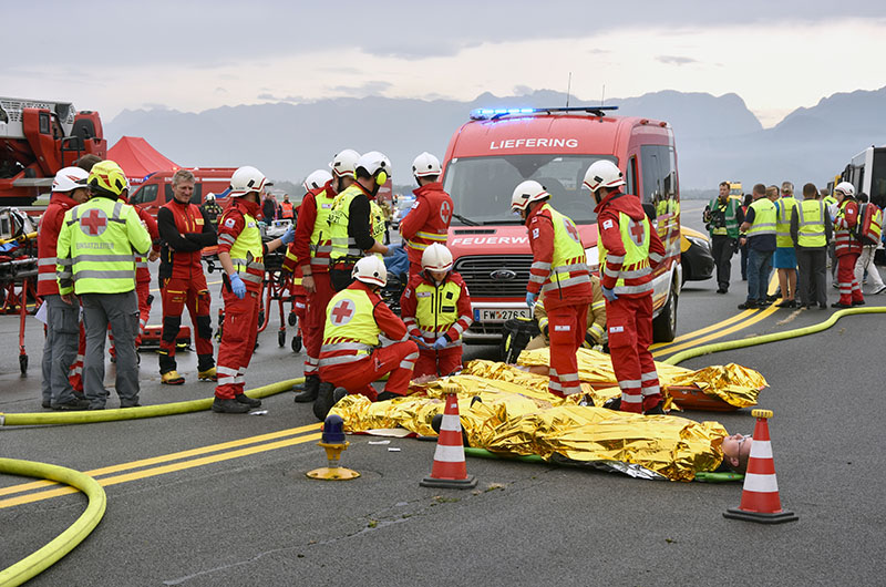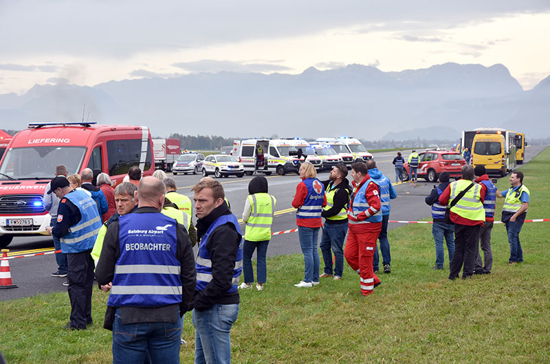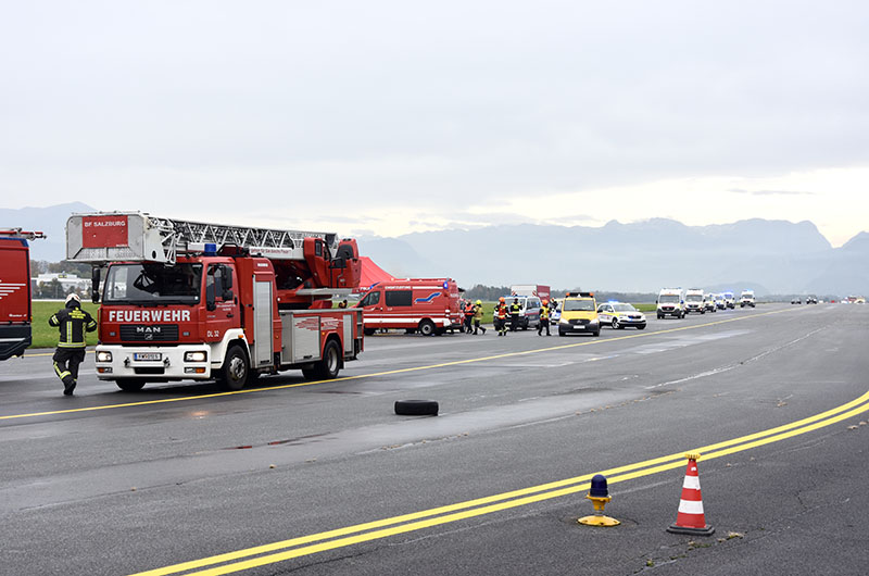 Die Großübung 2024 starte mit der visuellen und akustischen Alarmierung am Salzburg Airport um 14:00 Uhr, der Alarm wurde durch die Crew des Towers ausgelöst. Bei dem Übungsszenario waren zahlreiche Einsatzkräfte der Blaulichtorganisationen beteiligt, darunter die Flughafenfeuerwehr, Berufsfeuerwehr Salzburg, Freiwillige Feuerwehren, Rotes Kreuz, Polizei und das Kriseninterventionsteam.