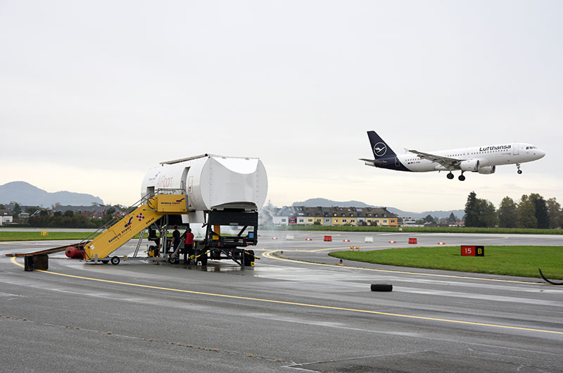 Über die Innsbrucker Bundesstraße gelangten die alarmierten Fahrzeuge zum Tor 5 und wurden von dort zum Einsatzort begleitet, sowohl Übung als auch die Vorbereitungsmaßnahmen fanden während des laufenden Flughafenbetriebes statt. Die Übung zielte darauf ab, Verbesserungspotential zu erkennen und für Prozessänderungen zu dokumentieren, der reibungslosen Zusammenarbeit zwischen den verschiedenen Organisationen, die Optimierung der Kommunikation, das Testen von Notfallplänen sowie die Erprobung von Abläufen wie Brandbekämpfung, Menschenrettung und Betreuung von Betroffenen. Auch die Dokumentation im Einsatztagebuch und die Übungsaufzeichnung mit einer Drohne sind Teil der Übung.