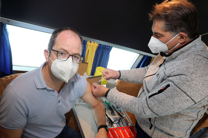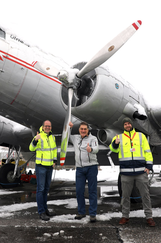 Das Führungsteam rund um DC-3 Clubobmann David Schilcher hatte heute eine tolle Aktion für Clubmitglieder und Flughafenangestellte auf die Beine gestellt. Ganz nach dem Motto der Landesregierung „Einfach Impfen“ konnten sich Mitglieder des DC-3 Clubs gegen Voranmeldung den Erst-, Zweit-, oder Drittstich holen – und das im DC-3 Clubflugzeug am Vorfeld des Salzburger Flughafens. Von 10:00 Uhr bis 15:00 Uhr stand Mag. Dr. Peter Jungbauer als „Clubarzt“ den Impflingen zur Verfügung. Wie bei allen anderen Impfungen wurde lediglich ein Ausweis, der Impfpass und eine E-Card benötigt um zum Stich in der DC3 zu gelangen. „Ich persönlich finde jede Aktion die hilft, dieser Pandemie Herr zu werden, enorm wichtig. Die Impfung ist hier das wirkungsvollste Instrument gegen Corona und ich bin froh mir heute in dem historischen Flugzeug des DC-3 Clubs den Boosterstich abholen zu können“, so Flughafenprokurist Christopher Losmann, der heute seinen dritten Stich erhielt.