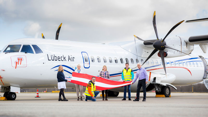 Die Lübeck Air fliegt ihre Fluggäste mit einem zuverlässigen und für den Regionalverkehr bewährtem Verkehrsflugzeug, einer ATR 72-500. „Wir schaffen ein Angebot, das viele gar nicht mehr kennen“, weiß Prof. Dr.-Ing. Jürgen Friedel, Geschäftsführer des Flughafens Lübeck und der Lübeck Air. „So ist in jedem Ticket bereits ein Gepäckstück sowie Handgepäck inklusive, an Bord erwartet den Passagier zudem ein extrem großzügig bemessener Sitzabstand von 90cm.“ Großartiger Service, überraschend großzügige Bestuhlung (nur 60 Plätze) mit Fenster oder Gangplätzen und eine kleine Bordmahlzeit lassen die Zeit an Bord sprichwörtlich wie im Flug vergehen.