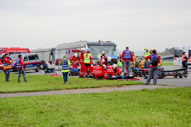 Blaulichtorganisationen proben den Ernstfall / Übungen behördlich vorgeschrieben / Sierra 02 startete um 14:00 Uhr / Einsatzort Rollbahn Lima und Foxtrott