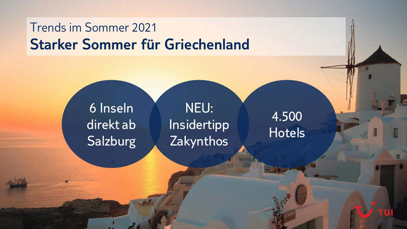 Geht es um die beliebtesten Reiseländer der Salzburger:innen, sind Reisen rund um das Mittelmeer 2021 gefragt. „Wir erwarten vor allem für Griechenland einen guten Sommer. Erste Tendenzen zeigen, dass es insbesondere von Familien nachgefragt wird. Daher haben wir unser Angebot ab Salzburg ausgebaut und bieten mit Zakynthos auch eine neue griechische Destination an“, sagt David Szabo. Die großen Inseln Kreta, Rhodos und Kos liegen in der Beliebtheit vorne und bieten das umfangreichste Angebot. Diesen Sommer werden aber auch kleinere Inseln gefragt sein, wie etwa Karpathos und Zakynthos, das im Sommer neu ab Salzburg angeboten wird.