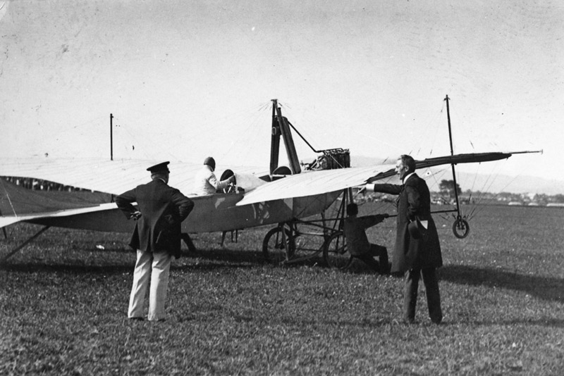 Am 16. Juli 1910 stieg auf der damals neuen Rennbahn in Salzburg–Aigen erstmals ein Flugzeug mit Motorantrieb auf.