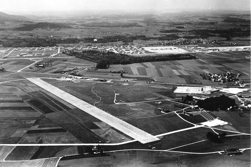 Von den Deutschen wurde das Flugfeld auf 80 ha erweitert, die Start- und Landepiste 10/28 betoniert (1200 mal 60 Meter), ein großer Hangar mit 35 m Frontlänge im Bereich Kugelhof und ein kleiner Hangar beim Karolingerwald gebaut.