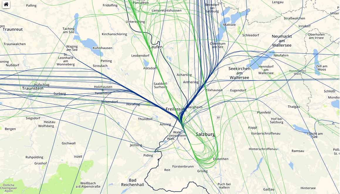 Bereits seit dem Jahr 2015 veröffentlicht der Flughafen Salzburg Flugspuren auf seiner Website. Dabei handelt es sich um Radardaten, welche von der Austro Control GmbH zur Verfügung gestellt werden.
